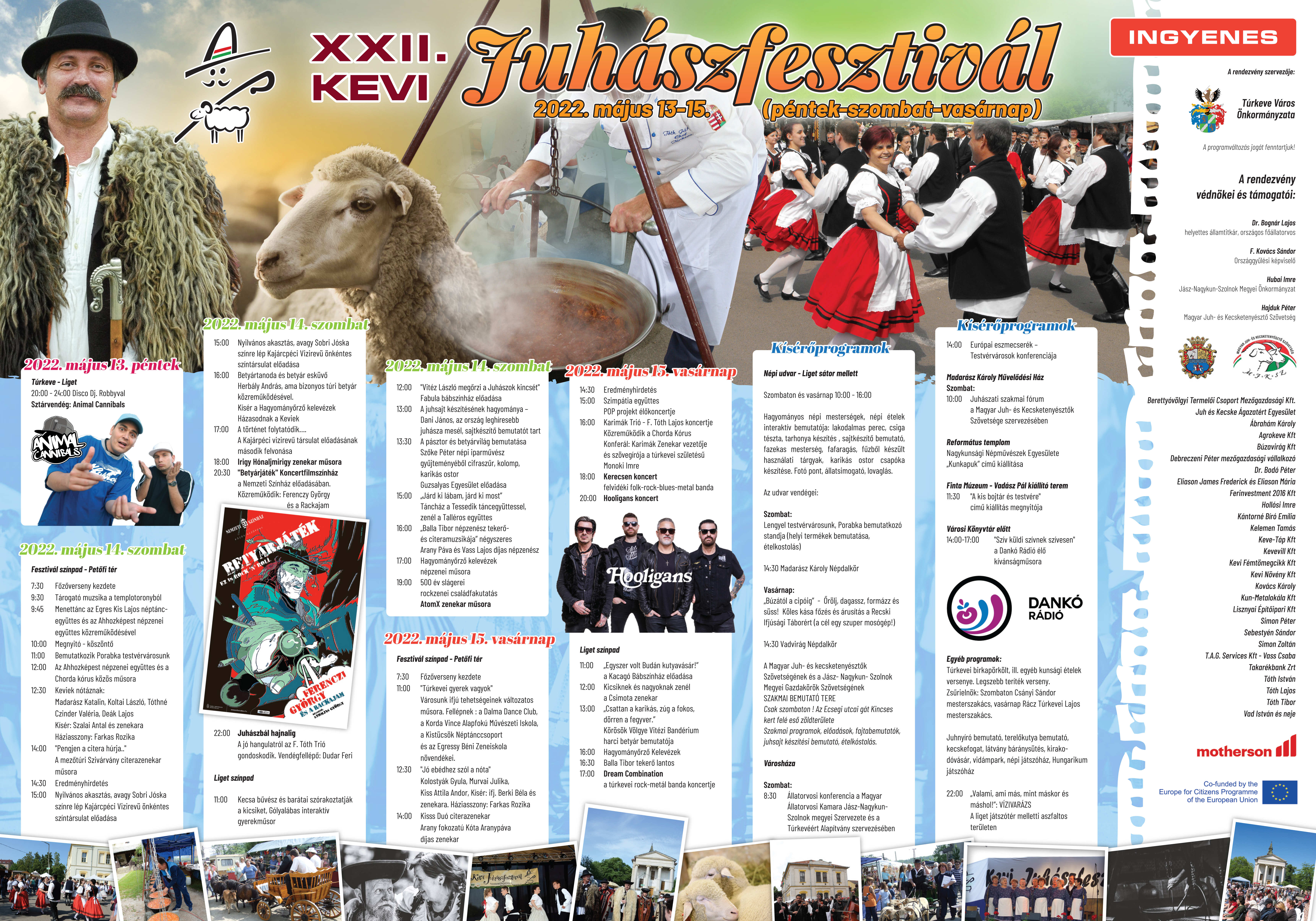 Kettő színpadon is zajlik a program, melyből nem maradhatnak ki a helyi hagyományőrző, népdalosok és zenészek, felcsendül a magyar nóta is kiváló túrkevei előadók tolmácsolásában. Az esti órákban sztárfellépők csalogatják a város közönségét és az idelátogatókat.