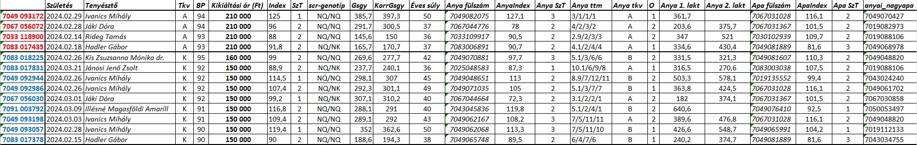 Az értékesítésre kerülő egyedekről honlapunk aukciós felületén tájékozódhat.