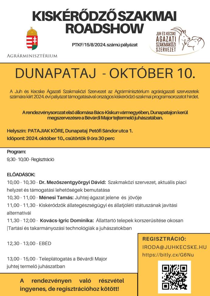 DUNAPATAJON 2024. október 10-én Kiskérődző Szakmai nap lesz a Juh és Kecske Ágazati Szakmaközi Szervezet szervezésében.