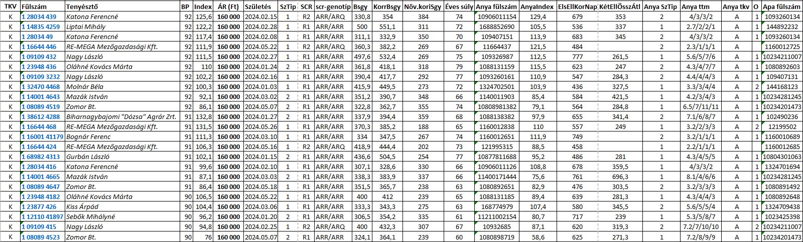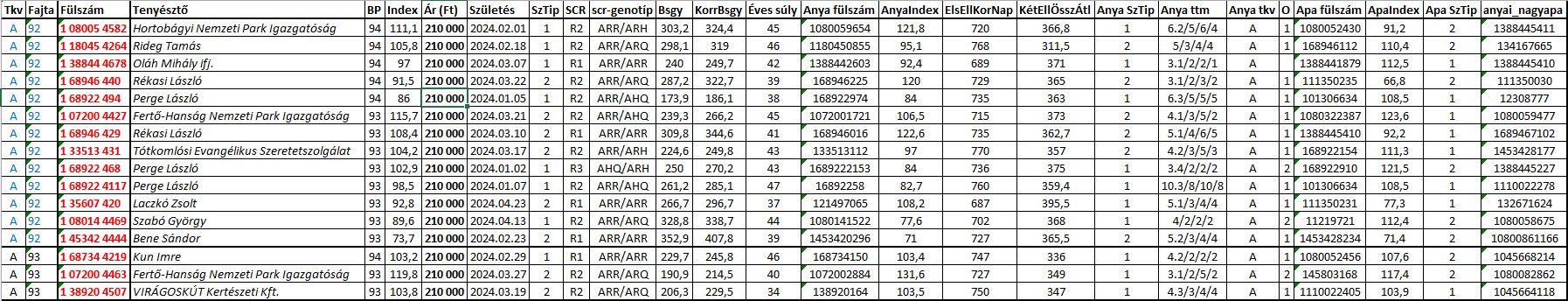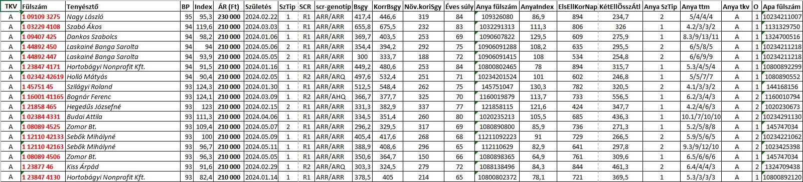 Az eladásra kínált kosok adatait az alábbi táblázatokra kattintva éri el.